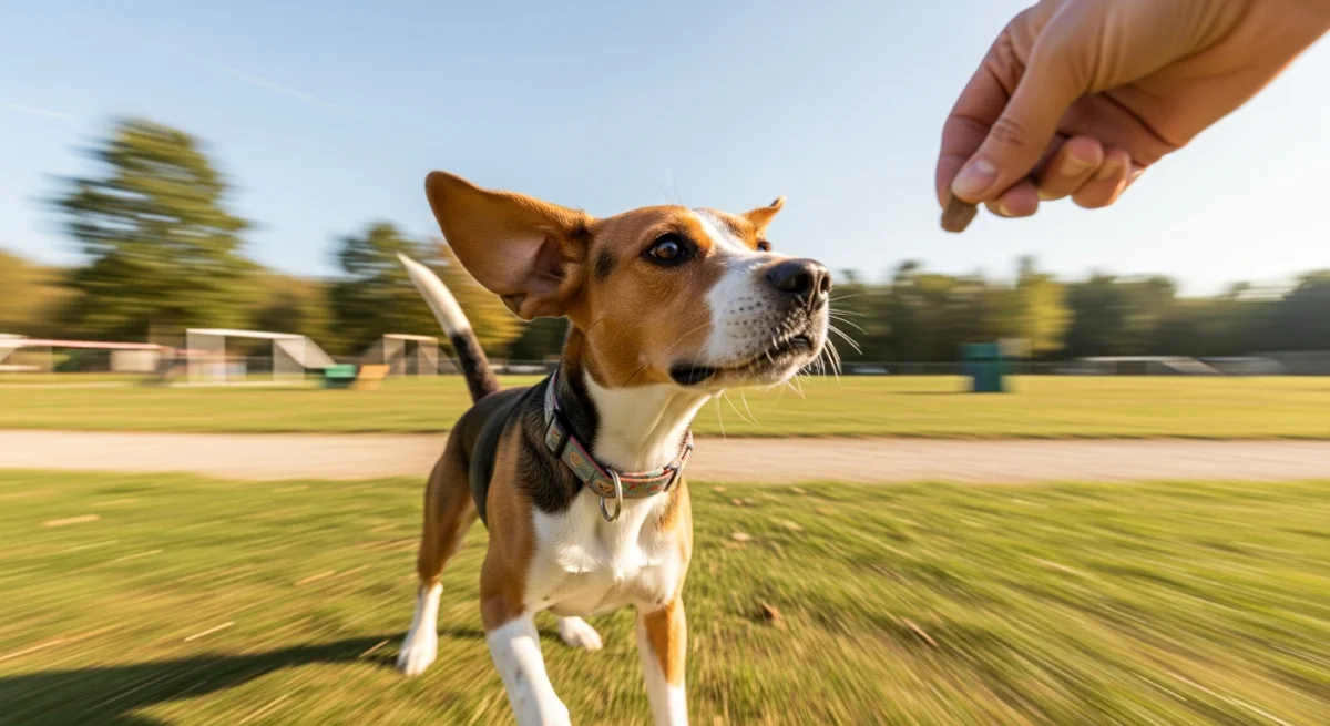 Le Beagle Harrier est réceptif à l'apprentissage dès son adoption. Débloquez chaque commande comme un achievement !